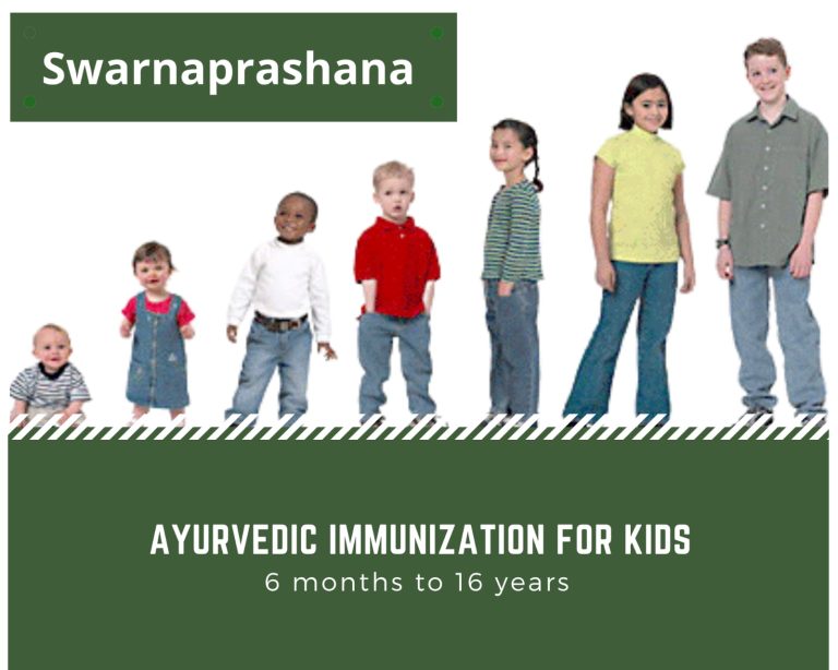 Swarna prashan sanskar is one of the 16 essential rituals described in Ayurveda for children. A special ayurvedic immunization program, Suvarnaprashanam is a safe ayurvedic combination which is beneficial for normal growth and development of children. It is prepared with pure gold in its bio-available form and other ayurvedic immuno-modulators and brain tonics. The medicine is given on the day of Pushya Nakshatra of every month to impart greater efficacy.
